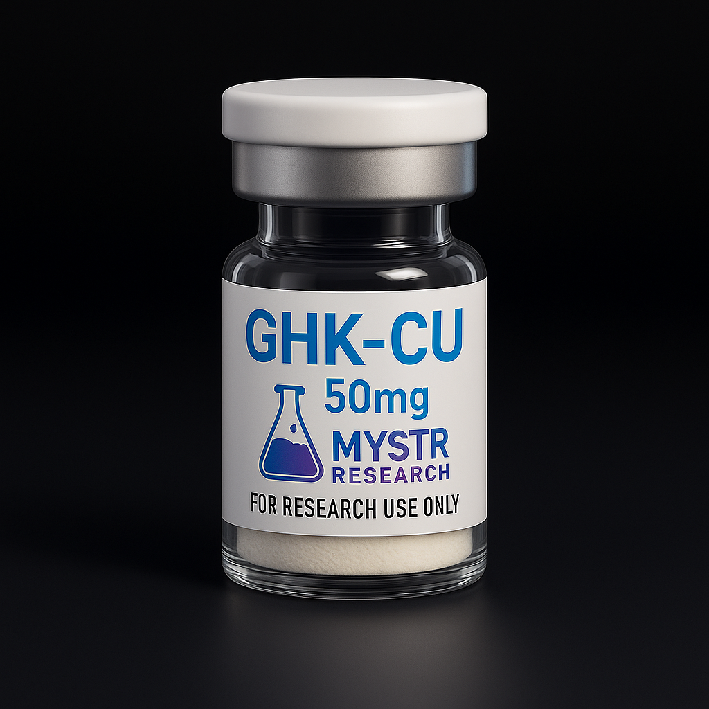 The GHK-Cu 50mg research compound from MYSTR Research is supplied in a high-purity, lyophilized form intended exclusively for controlled in-vitro laboratory studies. GHK-Cu is a naturally occurring tripeptide that binds to copper ions, creating a highly reactive complex used in numerous cellular and biochemical investigations. Because of its structural properties and ability to interact with signaling pathways, researchers frequently select the GHK-Cu 50mg research compound to explore tissue repair processes, regenerative activity, and cellular response mechanisms under regulated research conditions.