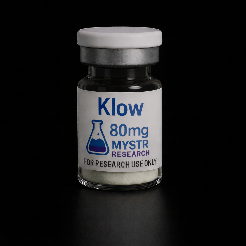 At MYSTR Research, our KLOW-80 80mg blended research compound is provided as a high-purity lyophilized formulation designed for controlled laboratory and in-vitro experimentation. KLOW-80 features a combined profile of four well-characterized peptides—GHK-Cu, BPC-157, TB-500, and KPV—recognized for their structural diversity and their relevance in cellular signaling, tissue-repair modeling, and inflammatory research environments.